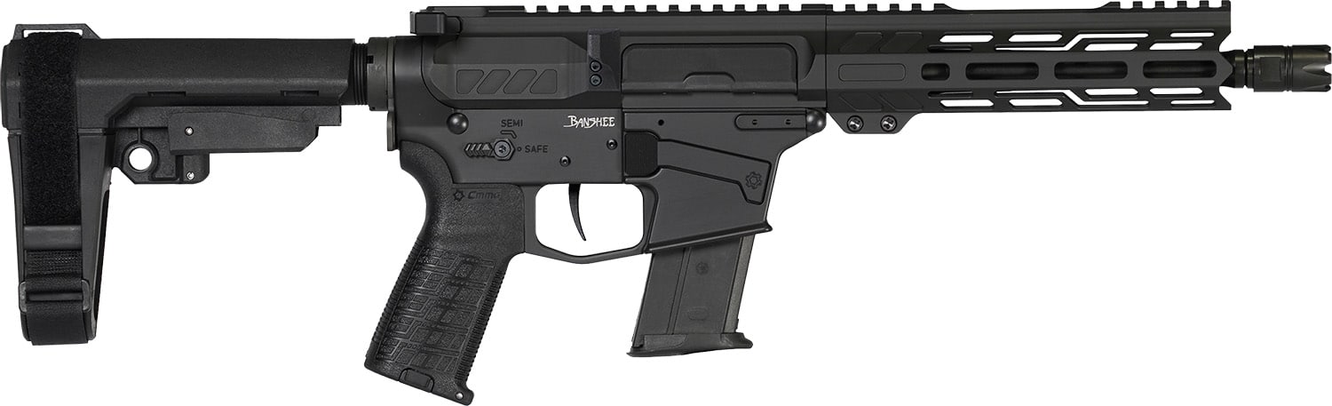 CMMG 57A340FAB Banshee MK57 5.7x28mm 20+1 8″ Black Nitride Medium Taper Threaded Barrel, EML 7″ M-LOK Handguards, Black Armor Cerakote Aluminum Picatinny Rail Receiver, CMMG Zeroed Grips